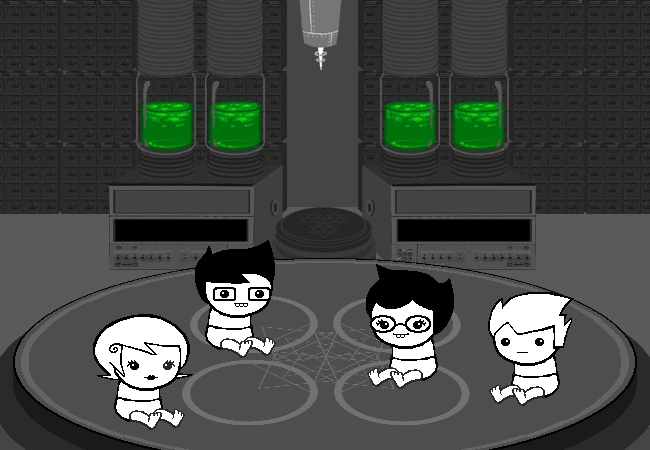 Изначально ядроспрайт Джона Эгберта прототипирован подарком от его Папы, Куклой-арекином. Она дала спрайту изуродованное лицо и фальшивую руку. После того, как попытки Роуз и Джона прототипировать спрайт смесью для Торта от Бетти Крокер, а затем и книгой Полковника Сассакра провалились, в спрайт по чистой случайности упал прах Бабули, чья неприкосновенная урна не устояла из-за падения массивной книги.