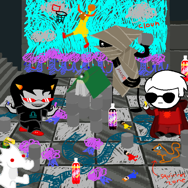 Позже мы видим, как Терези обследует комнату с компьютерами, где она сетует на отсутствие своей команды экспертов и на сложность расследования убийства, когда нет тела (ссылаясь на лужи крови Канайи, но отсутствие её тела). Затем она подходит к куче рожков, где находит тело Фефери. Она называет это "пронзение прямо по учебникам", что указывает на её неосведомленность о том, что Эридан тоже слетел с катушек. Она также замечает две ранки от проколов на шее трупа, которые подходят к клыкам Канайи, но Терези формулирует совершенно абсурдную теорию о том, что у Вриски появилось пристрастие к крови. Она, правда, и сама понимает, что эта теория не имеет ни капельки смысла.