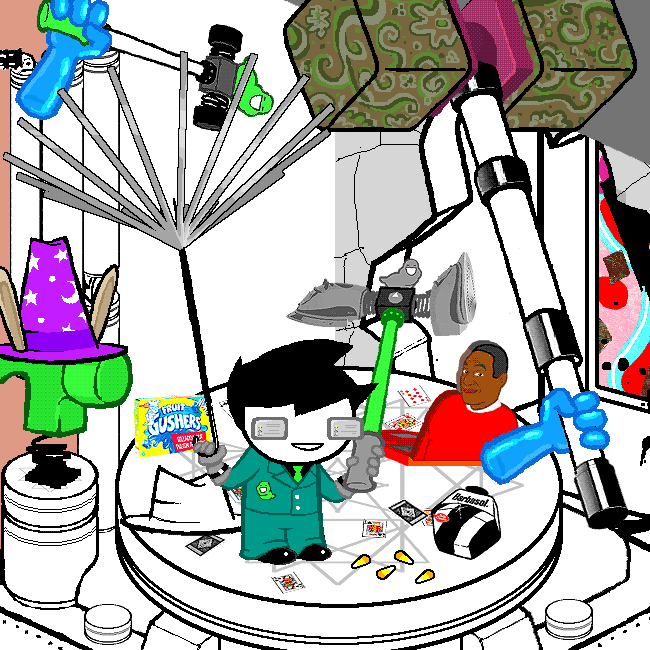 “The ALCHEMITER is upgraded with a huge metal bust of this awesome bro, and Dave's blender. The device has been reduced to an utterly useless heap of shit
