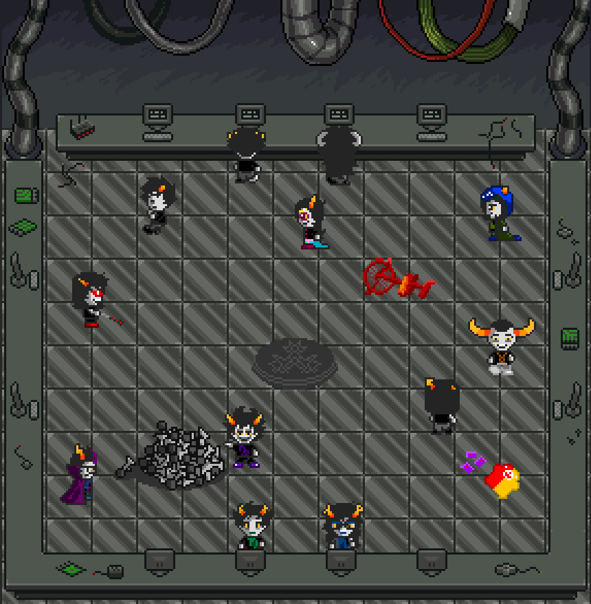In this game, you play as Karkat, Terezi, and Vriska as they search through the lab, examining objects of interest and collecting items from treasure chests (although none of the objects do anything apart from getting a humorous reaction/description from the character).
