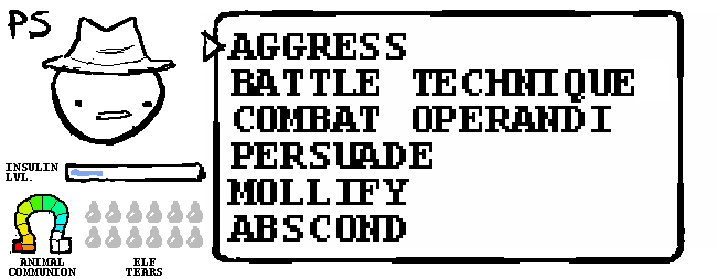 Problem Sleuth's “ANIMAL COMMUNION” shown in the lower left of his battle menu.