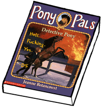 Pony Pals is a series of children's books written by Jeanne Betancourt. One of the books in the series, Detective Pony, is given to Jane Crocker by Dirk Strider. It is read in Act 6 Act 2 by Jane. Dirk Strider has changed Jane's copy of the book by replacing words and phrases in the novel to create a vulgar and obscene version of the story that is incredibly silly. Jane has read through the book several times, and again reads the first two pages, slathered in drawings and annotations by her ironic friend. Of all 44 books in the series, Detective Pony was likely chosen to reflect Jane's interest in crime-solving and due to the significance of the protagonist, Anna Harley's name. In one of Dirk's improvised annotations, he suggests that Anna would be a good name for Jane but he doesn't know why. This may be because 'Anna' is one letter detached from Nanna. He also refers to the name "Harley" as a “Dumb name. Sounds like product of speech impediment by imbecile”, a reference towards Jade's last name and its origins as a corrupted version of Halley, indeed caused by a speech impediment. Jane's copy caught fire when her computer exploded; luckily Dad was around to save it.