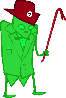 Crowbar's hat is designed after the maroon billiard ball numbered 7; his name comes from the number's resemblance to the prying tool, which is also Crowbar's primary weapon and method of interacting with the world. Additionally, the word "crowbar" has 7 letters.