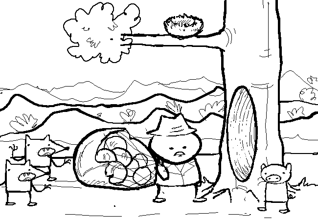 | Laborer Wasps - Professor Wasp - Zombie Astronaut - Little White Cat - Fuzzy Man Bear and Sarah |