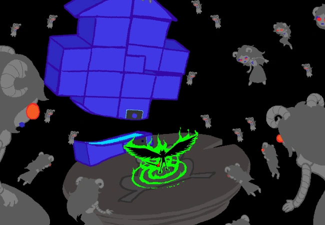 He proceeds to fly to John's Quest Bed, and kills him in his sleep (unknowingly causing him to ascend into a god tier player) – perhaps as revenge for his earlier encounter with him, even though the only injuries he could have sustained would be to his pride.