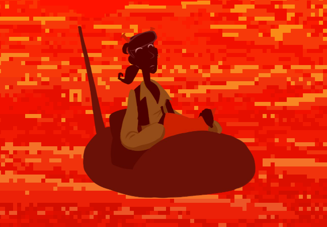 - Meenah conjures an image of herself standing on the bow of a gold-lined fuchsia cruise liner, with white dolphins swimming alongside it.