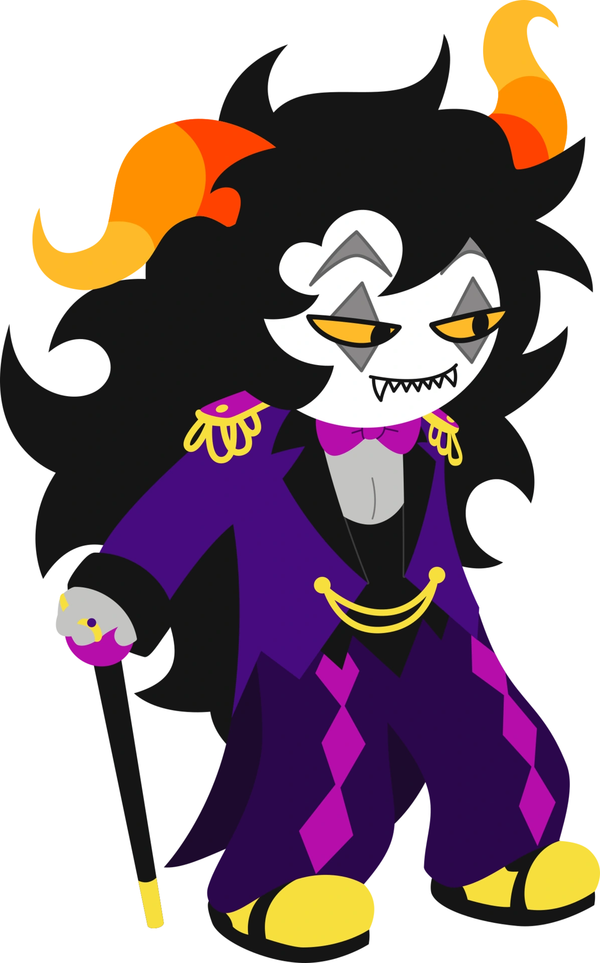 Marvus appears in Hiveswap: Act 2 as an important character. He first appears in the train station where he helps Joey and Xefros get train tickets by indulging Zebruh and talking to Chixie. He then acts as “his honorable tyranny” of the case in the jadeblood and tealblood car and mostly just goes along with it, perking up when things get interesting. He seems to be nice and keeps the cool demeanor he usually has until the end of the game, where Marvus appears to be sadistic and ruthless, starting a game with Joey where he tasks her to kill trolls of a certain blood color. However in truth, he does care about Joey and is aware that she actually did not kill Cirava or Tegiri. When Joey is tasked to kill a purpleblood, he sends her out of the car for a while. Upon her return, Baizli steps outside to kill her. Suddenly, Xefros appears from behind to save her from the attack, accidentally killing Baizli in the process. When Joey questions Xefros on how he was able to escape Chahut’s grasp, he explains that Marvus ordered her to let him go, possibly because he knew the danger that Joey was in. However, he doesn’t seem to care about his fellow purplebloods beyond surface level as seen when Barzum is having a mental breakdown. He even congratulates Joey on the kill.