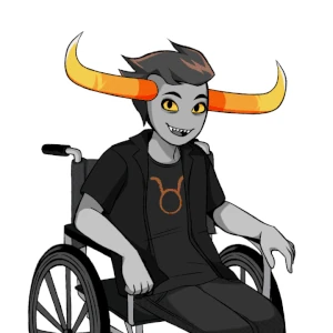 You were enjoying an evening stroll when you see a wheelchair-bound troll whizzing down a hill, the bronzeblood unable to control his descent whilst on the phone. You rush to his aid right as he tumbles gracelessly onto the ground, helping him retrieve his wheelchair so he could get back into it. After doing away with introductions, Tavros explains that he'd been trying to catch a rare Fiduspawn Go monster, but it's hard going uphill while on a wheelchair.