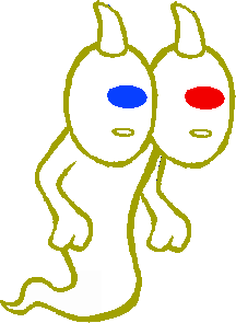 Because of his zodiac sign of Gemini, he has a penchant for bifurcation and duality, often splitting things into red and blue. In keeping with his zodiac theme, his appearance emphasizes duality. He has two sets of horns instead of one, glasses with hetero-chromatic lenses, and two mismatched shoes. In addition, the trolls' and kids' universes are seen in his shades. Strangely enough, his actual eyes seem to be the same color as his glasses , and he is gifted with "vision twofold", the ability to see the future and the present.