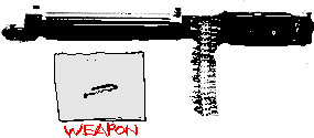 The machine gun is initially used by Pickle Inspector. It is very heavy, so under normal circumstances PI can only hold it for a few seconds before having to drop it. Its alternate form is a hairpin, which is appropriate, as the weapon has a "hairpin trigger" that can go off at any moment.